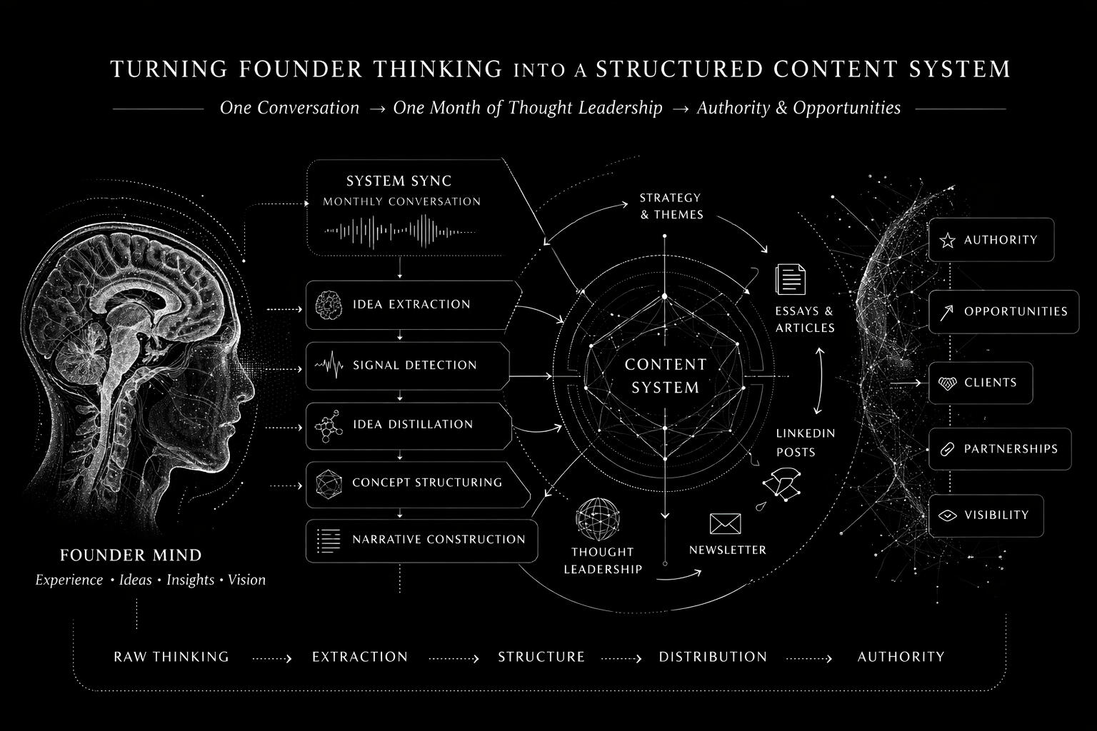 • High-quality written content (posts, essays, frameworks) based on your thinking